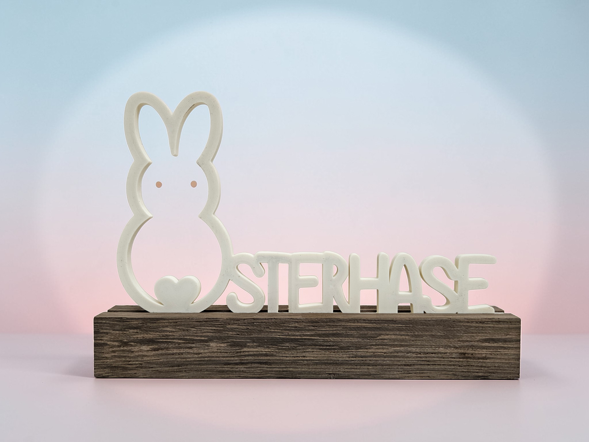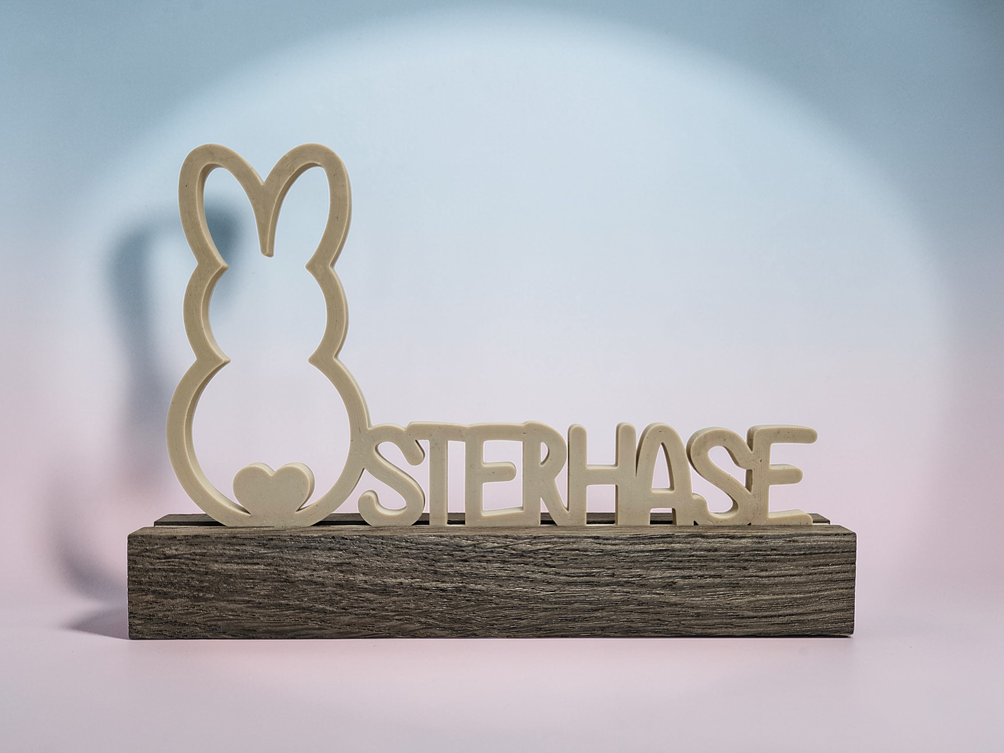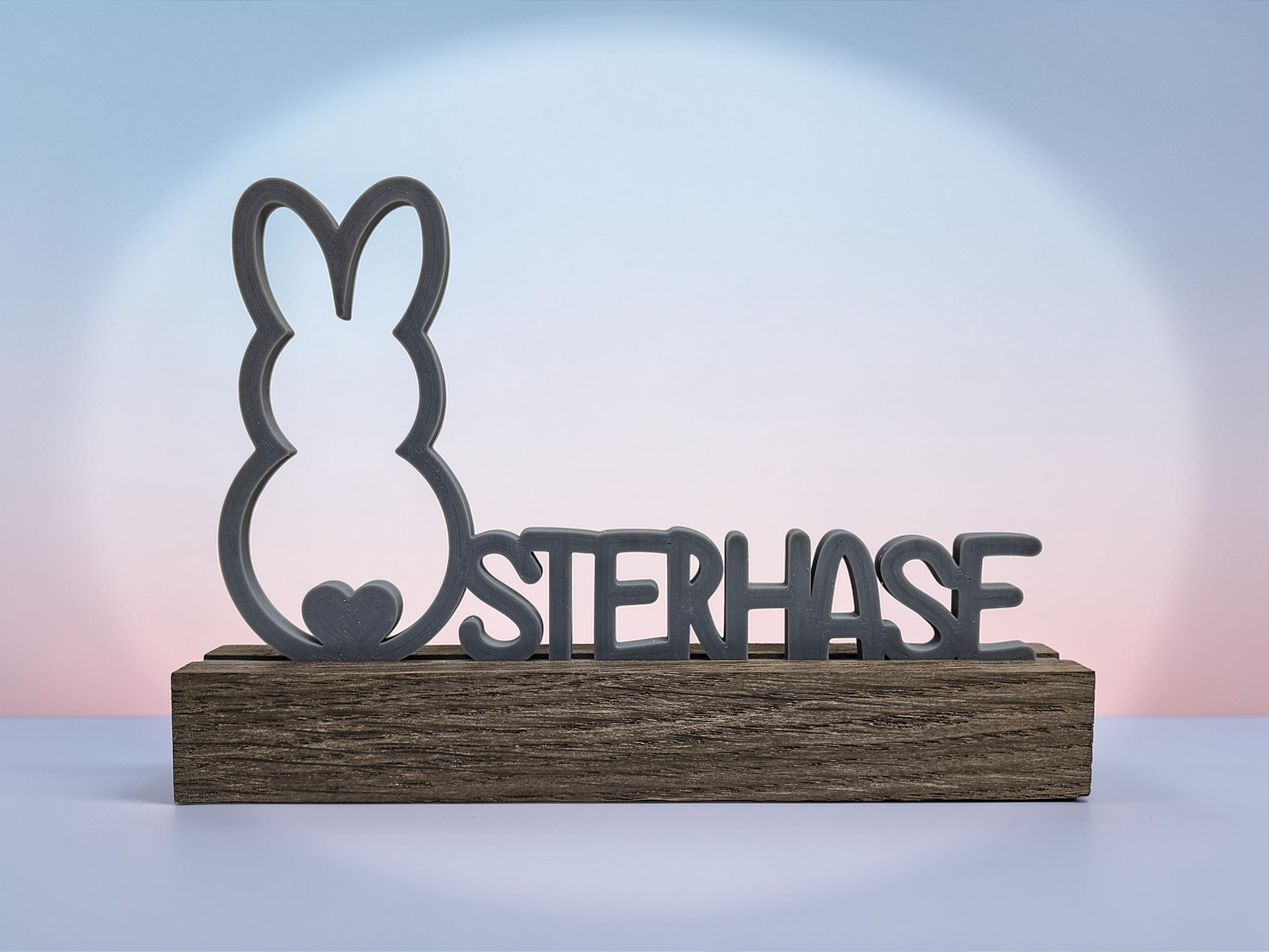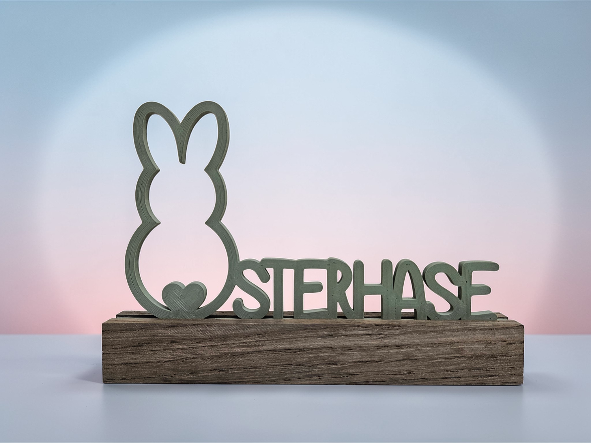 Osteraufsteller „Frohe Ostern“ mit Holzsockel – 3D gedruckt